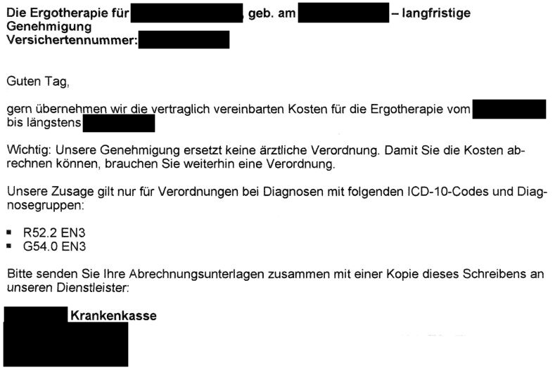 Beispiel für Ergotherapie-Verordnung mit langfristiger Genehmigung